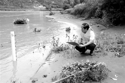 图为蒲政平在观测水位