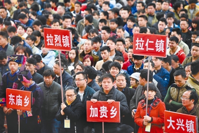 广东深圳宝安区带领51家企业2000多个就业岗位到广西都安瑶族自治县,为都安县建档立卡贫困人口实现转移就业、脱贫致富开辟了一个便捷平台。都安县19个乡镇3000多名需要就业的村民来到现场,寻找适合自己的就业岗位。