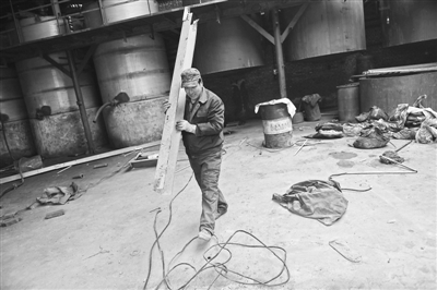2月7日,山西省太原市,因颜料罐破裂导致五公里防洪渠变红的事发涂料厂被依法拆除,仅剩一间厂房因地面覆盖染料等待专家处理。