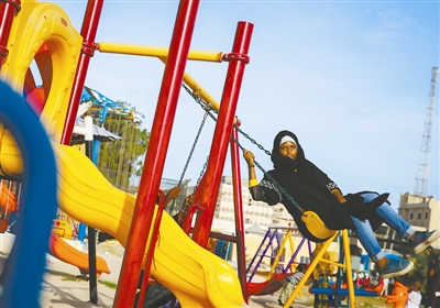 2月11日,在索马里首都摩加迪沙,一名女孩在公园里游玩。