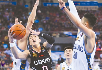 2月12日,CBA第35轮北京队主场负于辽宁队。图为辽宁队郭艾伦上篮。