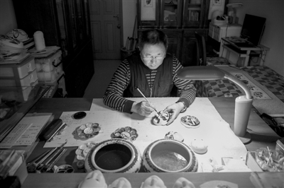 盛华在绘制京剧脸谱。 本报记者 吴凡 摄