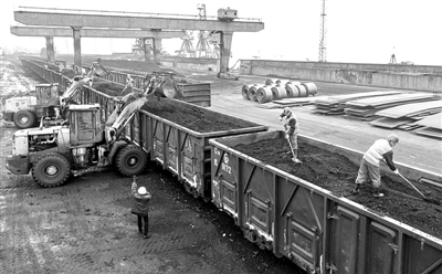 近日,九江车务段开辟绿色通道,强化运输组织力度,采取快编快解、快取快送等方式保障春节用电。图为九江车务段九江北站职工正在抢运电煤。鲍赣生 摄