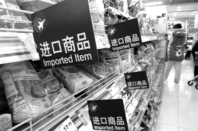 图为湖南郴州市苏仙区一家超市的进口商品 。