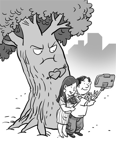 在树皮上刻字可不轻松,能坚持四年之久,真够“痴情”。然而,他的爱却毁了19棵大树——树皮是根部为枝叶输送养分的主要途径,受损会影响寿命甚至导致枯死。这正是:“树木枯死终不悔,为伊刻字不觉累”。不少人为了表白创新屡出昏招儿。其实表白也好,记录爱情也罢,本无可厚非,但非要搭上一些公物的“命”就过分了,严重的可能还违法。希望主人公能够明白这一点,不要用毁树来记录爱情了,哪天“爱情树”死了,兆头可不好哦。