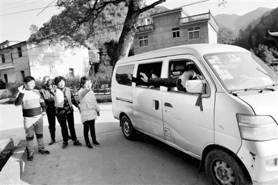 2月13日,江西上饶,临别时,留守儿童洪梦秋、洪志强姐弟俩向爸妈挥手道别。