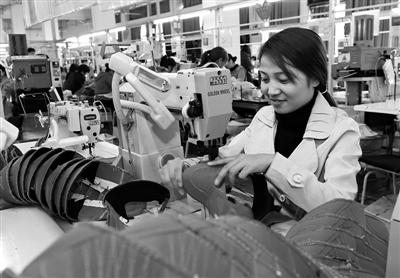 2月16日,莆田市力奴鞋业有限公司返岗的工人在生产运动鞋。