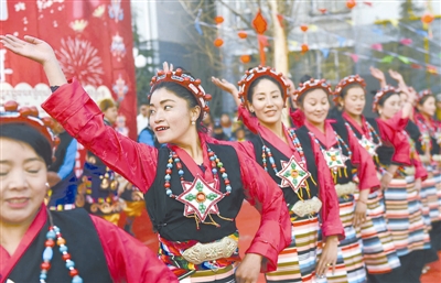 2月17日,文艺工作者在活动现场表演藏族传统舞蹈。