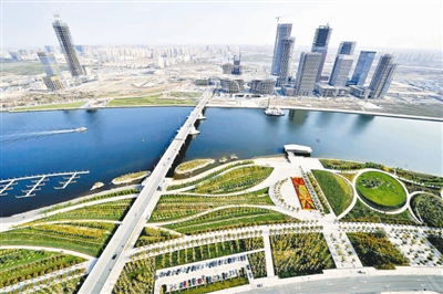 于家堡金融区的楼盘矗立在天津海河岸边(2014年11月7日摄)。