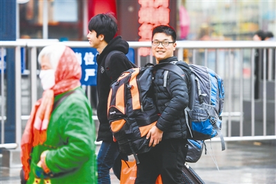 2月21日,乘客在河南省郑州火车站进站乘车。