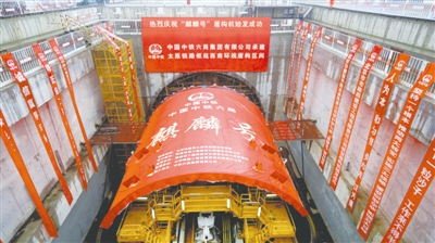 中铁六局和中铁装备自主研制、中铁六局组织,目前在施的我国最大直径(Φ12.14m)土压平衡盾构机“麒麟号”在太原西南环线铁路工程始发