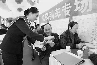 K194次列车途经四川、重庆、湖南、广东三省一市,每年60%春运旅客为川渝两地外出务工人员。为帮助他们在顺利找到工作,成都铁路局成都客运段联合川粤两地工会推出针对外出务工者的“返岗列车”专场招聘会活动,除提供企业招聘信息,发放维权法律知识读本、求职防骗小知识等普法宣传材料外,还在列车上设立劳动保障咨询点,由专业人员现场为外出务工人员答疑解惑。 (李娜 龚萱)