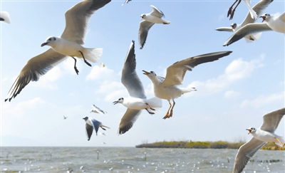 初春时节,云南省昆明市滇池附近的连片湿地公园里春意盎然,鸥戏人欢。近年来,当地着力改善滇池及周边的生态环境,加大水域湿地治理修复力度。如今滇池周边建成5.4万亩湖滨生态带,流域生态状况明显改善。