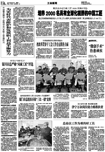 此外,交通建设系统各级工会注重服务产业发展中心,积极发挥主力军组织者作用。港珠澳大桥、保障性安居工程等重大工程劳动竞赛蓬勃开展。“三比一降”节能减排、“五小”职工技术创新活动扎实推进,劳模创新工作室迅速发展。“安康杯”竞赛和班组建设卓有成效,水运、道路运输、城市公交、建筑施工、市政公用等行业安全生产水平明显提高。职工素质建设工程稳步推进,海员、港口机械驾驶员、汽车驾驶员、镶贴工、污水处理工等各工种技能大赛广泛开展。