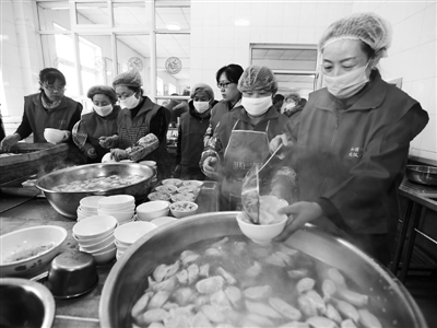 2月26日,志愿者在衡水市桃城区石家庄村为老人们煮饺子。
