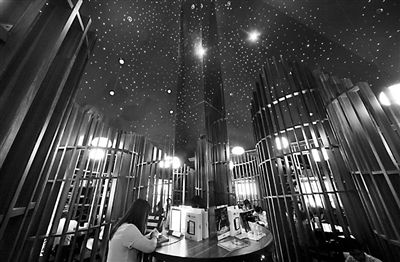人们在上海江泰晤士小镇钟书阁二楼的星空世界里相约。杨奕 摄/视觉中国