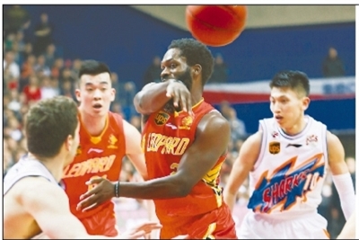 2月26日,深圳马可波罗队球员帕戈(右二)在比赛中传球。当日,在2016-2017赛季中国男子篮球职业联赛(CBA)四分之一决赛第二场比赛中,上海哔哩哔哩队主场以107比99战胜深圳马可波罗队。 新华社记者 丁汀 摄