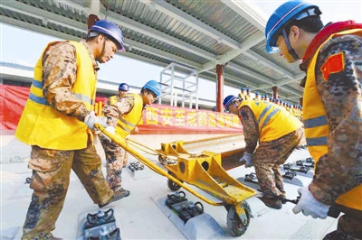 2月28日上午9时,随着西成高铁宁强南站站内最后一段钢轨铺设完毕,我国首条穿越秦岭的高速铁路——西成高铁陕西段正线、站线轨道全线铺通。唐振江 摄