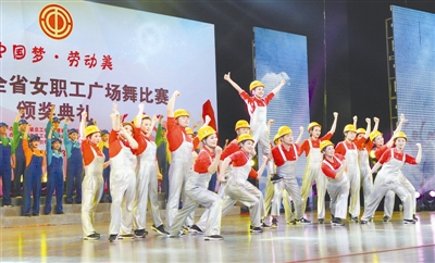 由福建省总工会、福建省体育局、福建省妇联主办的2017年“中国梦·劳动美”全省女职工广场舞比赛颁奖典礼暨汇报演出3月5日在福州市工人文化宫职工演艺中心举行。来自该省16支代表队、266名参赛队员参加比赛。