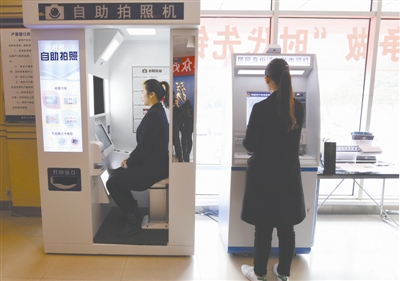 3月8日,市民在重庆两江新区人和派出所使用身份证自助拍照机和自助申领机。