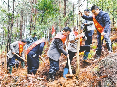 3月12日,是第39个植树节。当天,福建省龙岩市开展义务植树活动,104名市级以上劳动模范来到位于长汀县的福建“五一生态林”植树。长汀是“国家水土保持生态文明县”,为充分发挥劳模在治理水土流失中的示范引领作用,2012年福建省总工会、龙岩市总工会、长汀县总工会在长汀县共同设立了百亩“五一生态林”。本报记者 吴铎思 本报通讯员 郑秋生摄