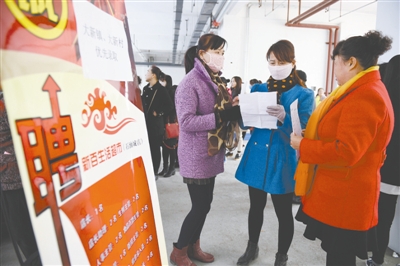 3月12日,宁夏银川市兴庆区大新镇举行失地农民专场招聘会,辖区内一超市为失地农民提供300多个就业岗位,让失地农民实现家门口就业。