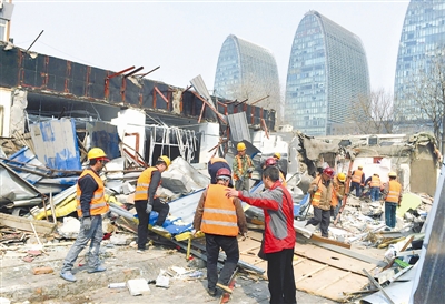 3月17日,北京西直门立交桥西北侧十多个违章建筑被拆除。