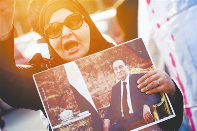 3月19日,在埃及开罗南部马阿迪军事医院外,埃及前总统穆巴拉克的支持者参加集会。3月13日,埃及开罗地区检方下令批准释放前总统穆巴拉克,结束其3年牢狱生涯。但截至周日,穆巴拉克仍住在曾经服刑的马阿迪军事医院内。 新华社记者 孟涛 摄