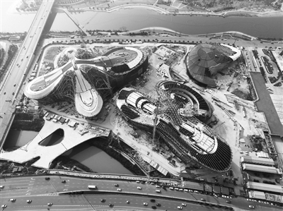 这是2月15日拍摄的长沙梅溪湖国际文化艺术中心主体建筑施工现场。
