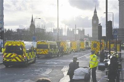 记者在威斯敏斯特教堂西侧警方拉起的警戒线外看到,通向议会大厦和威斯敏斯特大桥的道路已全部封闭。警察开始对过往行人进行单向疏导,并查问行人去向和目的。