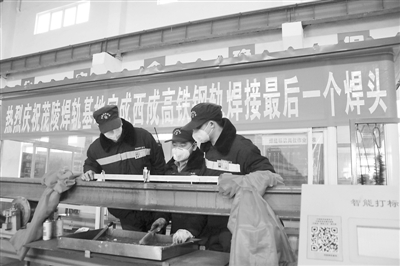 3月22日9时30分,在西安工务机械段茂陵焊轨基地,最后一个钢轨焊头的焊接完毕,标志着西成高铁长钢轨焊接生产任务圆满完成。该焊轨基地160名职工历时321天,累计焊接钢轨16000根、焊头12900个,焊头合格率100%。