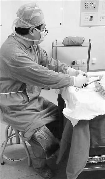 手术后还没过24小时,袁家天在确认可以主刀之后,他果断拔下镇痛泵,亲自上手术台主刀。从早上9时到下午1时,袁家天进行了一台四级手术。手术后,袁家天一直在医院输液,晚上11点才从医院打完点滴回家。