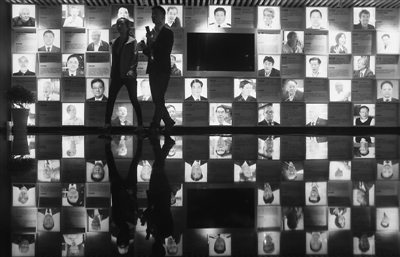 图为3月25日所摄青岛国际院士港里的院士墙。