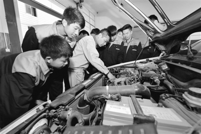 3月29日,湖北省保康县中等职业技术学校教师给学生讲解汽车发动机构造。近年来,作为湖北省“襄阳市现代学徒制试点学校”的保康县中等职业技术学校,采取“校企结合”等方式,加强汽车运用与维修、电子商务等骨干专业建设,有针对性地培养订单式职业人才,受到用人单位欢迎。通讯员 杨韬 赵官权 摄