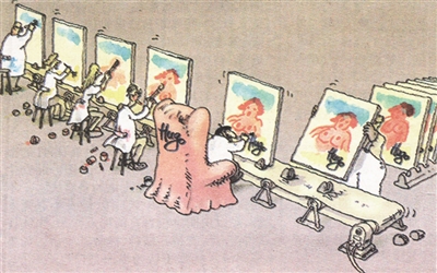 中国人将流水线作业成批生产的绘画称为“行活”,国外类似的作坊也不乏舞笔弄色的快手。当然这里不会出现艺术业创新的精品,更难涌现出类拔萃的大师。