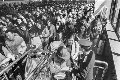 4月1日下午,北京西站,前往黄山的游客正在检票进站。清明节历来就是我国的传统节日,在这一天,人们或扫墓祭祖,或踏青出行。而自从清明节被列为法定节假日以来,清明小长假就成为了人们放松休闲的好时机。本报记者 王伟伟 摄