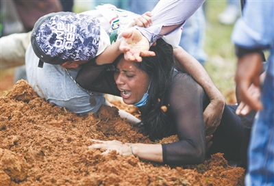 4月4日,在哥伦比亚西南部普图马约省首府莫科阿,一名女子在泥石流遇难者葬礼上恸哭。哥伦比亚卫生部门3日证实,哥伦比亚西南部普图马约省首府莫科阿市泥石流遇难者人数升至273人。 新华社发(帕斯摄)
