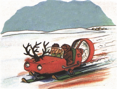 雪橇早年在极地是代步、运输的主要工具。这幅画的构思若在几十年前似有“鸟枪换炮”的感觉,而今却显得有些过时啦!