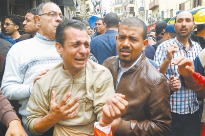4月9日,在埃及亚历山大市,人们聚集在爆炸地点附近。