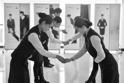 当日,记者在哈尔滨客运段哈齐高铁车队采访拍摄了正在参加岗前培训、即将上岗的高铁乘务人员,体会每一名准“动姐”背后的付出。在一个月的岗前培训中,准“动姐”们需要进行理论、形体、服务礼仪、列车实训等多方面培训。据介绍,哈齐高铁车队共有300余名乘务人员,其中女乘务员65人。 新华社记者 王松 摄