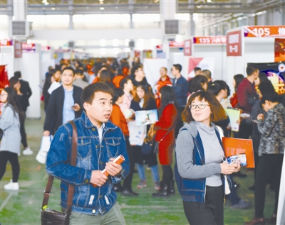 4月8日,京津冀蒙工会跨区域促就业活动吸引众多求职者。