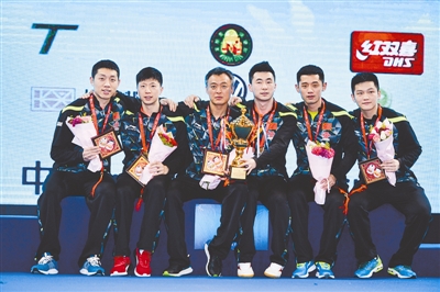 4月12日,中国队在男团颁奖仪式上。当日,在江苏省无锡市举行的第23届亚洲乒乓球锦标赛男团决赛中,中国队以总分3比0战胜韩国队夺冠。新华社记者 李响 摄