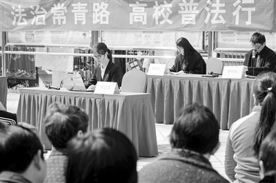 4月12日,安徽大学法学院的大学生来到合肥市常青街道淝南家园社区,以模拟法庭的形式为社区居民呈上一堂生动的“普法课”。