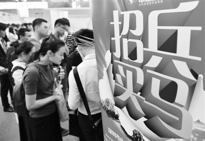 4月15日,求职者在第三届全国高校毕业生春季双选会上应聘。