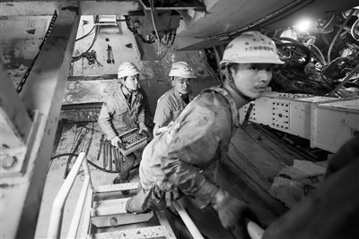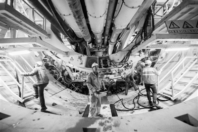 《工人日报》记者近日走进京沈高铁望京隧道的施工现场,记录下他们的工作场景。一台长约180米的盾构机正在两名司机的操作下徐徐推进,与此同时,拼装工人正将一块块宽2米、厚0.5米、重9吨的管片拼接安装在隧道的墙壁上。