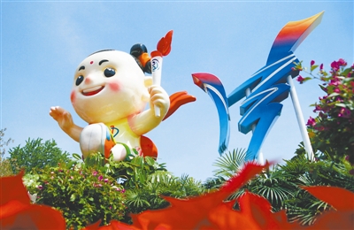 第13届全运会将于8月27日~9月8日在天津举办。图为天津全运会吉祥物“津娃”雕塑。视觉中国 供图
