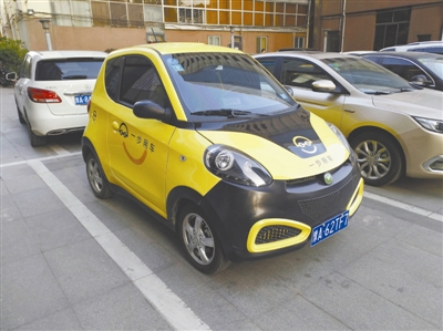 4月17日,郑州街头现纯电动共享汽车,该车十分小巧可爱,扫码即可租车,满足了市民的一般出行需要。