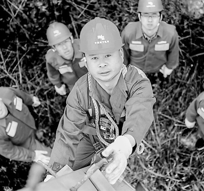 “我永远记得,第一次爬杆时,连脚扣都用得不熟练。弄得现场的同事哈哈大笑……”上班第一天“惨痛”的经历,刘鹏仍记忆犹新。