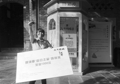 4月18日,最美成都诗词朗诵季“每日之星”的争夺激烈,最终,四川大学打工诗人凌丽秀以朴实动情的朗诵,成功斩获一份千元大奖。凌丽秀说,自己写诗,是受成都浓厚的文化氛围影响,成都的一草一木都成为她写诗的灵感。