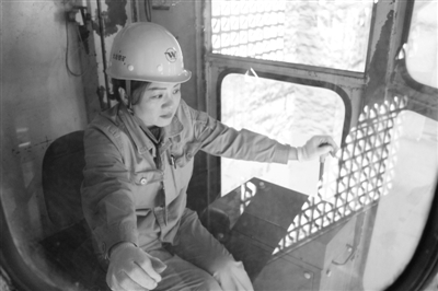 在大冶铁矿选矿车间,天车班组的6名女工负责15台天车的操作和维护工作。她们驾驶着天车在30多米高的精矿生产线上“飞行”,在不足2平方米的驾驶室内把球磨机驯得“服服帖帖”。图为该班组一位女工正在驾驶天车作业。方国俊 摄